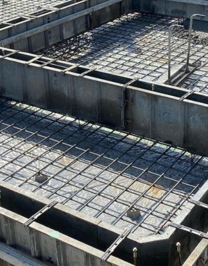 私たちが提供するのは強度・精度そして美しさを併せ持つ基礎。どの基礎工法をご依頼いただいても、それぞれの基礎が持つ美を追求します。建物の基礎を打つ際に、型枠を作らず鉄筋とコンクリートを同時に打ち込み一体化させる「一体打ちベタ基礎工法」を取り入れています。型枠を作らないため、工期の短縮や省力化が可能であり、さらに基礎部分の強度や防水性能が高い特徴があります。経験と技術が求められる工法です。